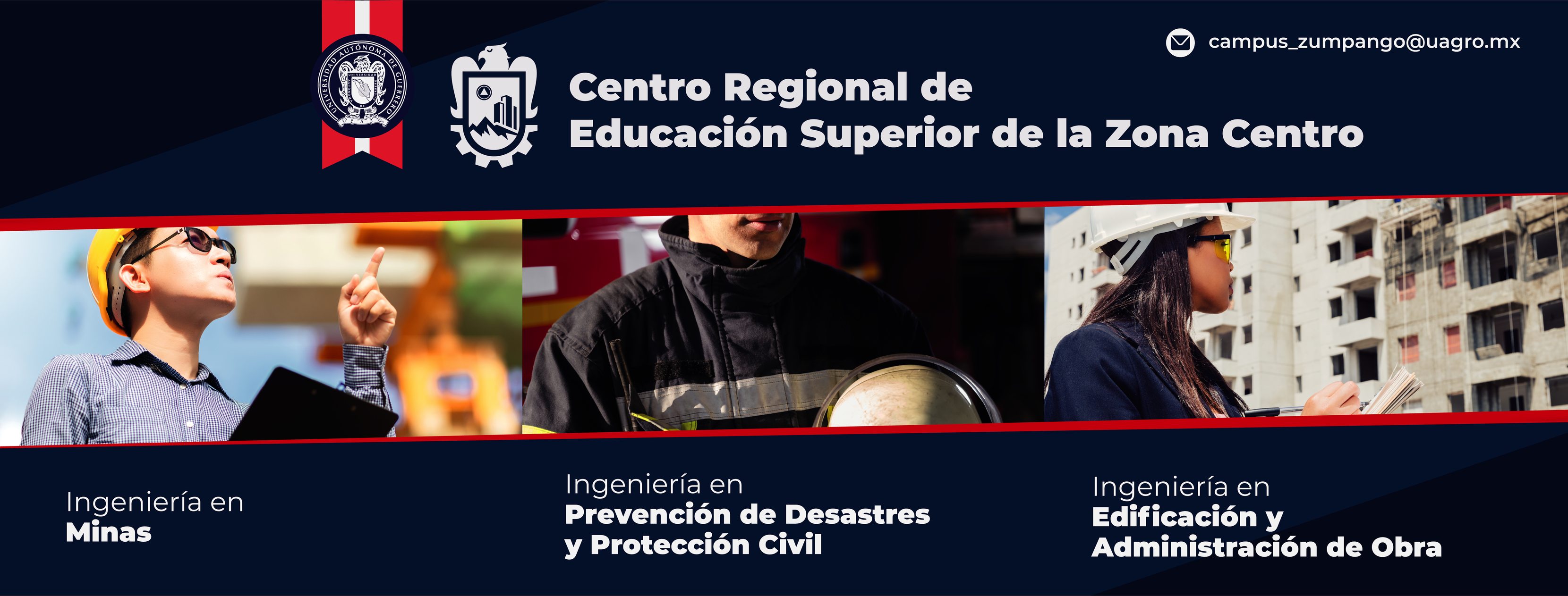 Bienvenidos a la página del Centro Regional de Educación Superior Zona Centro Campus Zumpango de la Universidad Autónoma de Guerrero, donde esperamos que encuentre toda la información referente a las licenciaturas de Ingeniero en Minas, Ingeniero en Prevención de Desastres y Protección Civil e Ingeniero en Edificación y Administración de Obras.